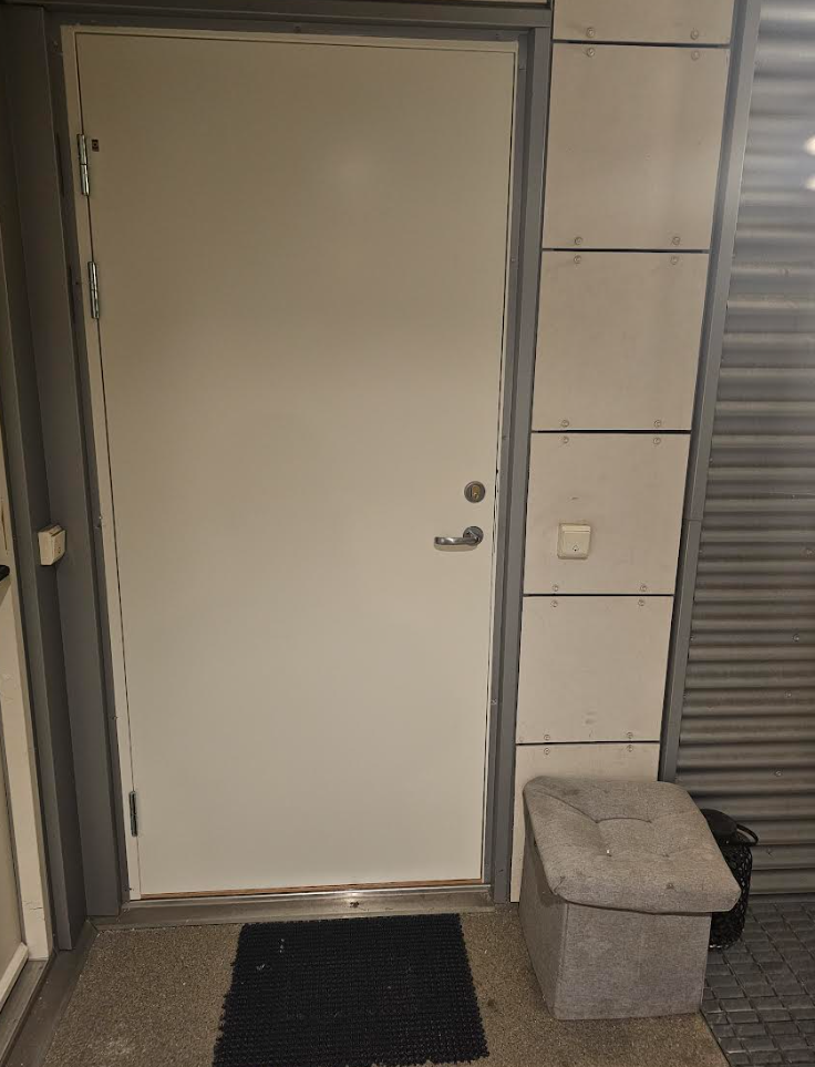 The room is the first one on the left side. Do not enter the other rooms, as there are other tenants there.